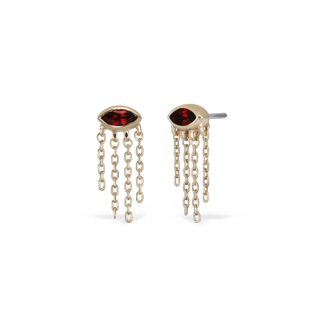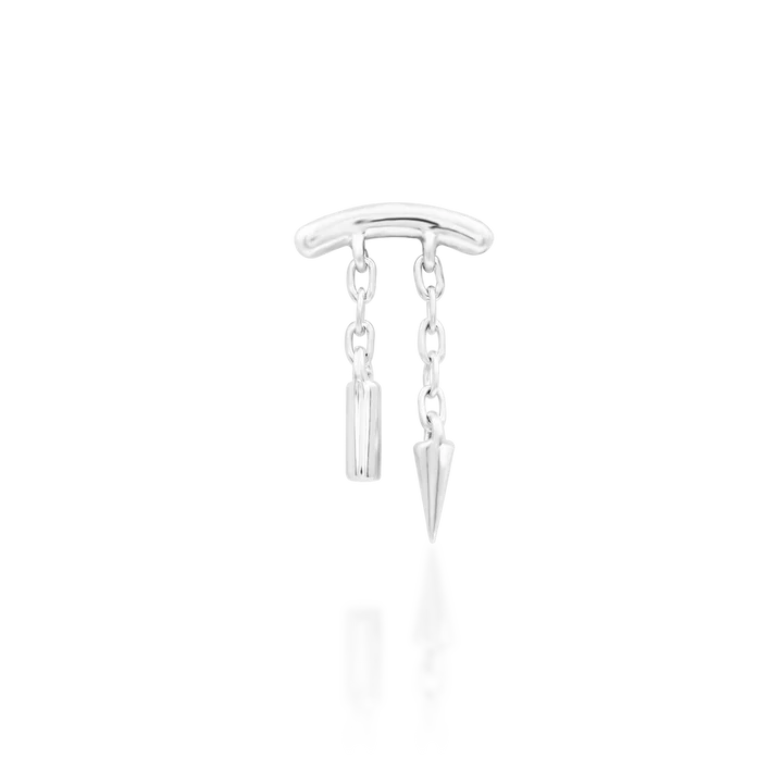 • Threadless piercing met prinsessenslijpsel White Topaz en drie curb chain-tassels van 14k massief goud – elegant en subtiel beweeglijk design