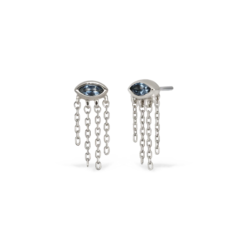 Lyra - Tiny Kite Shaped London Blue Topaz Dangle Gemstone